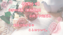 お知らせ 【お知らせ】仕事の研修(勉強)期間に伴う予定変更、私のこれからのことについて。